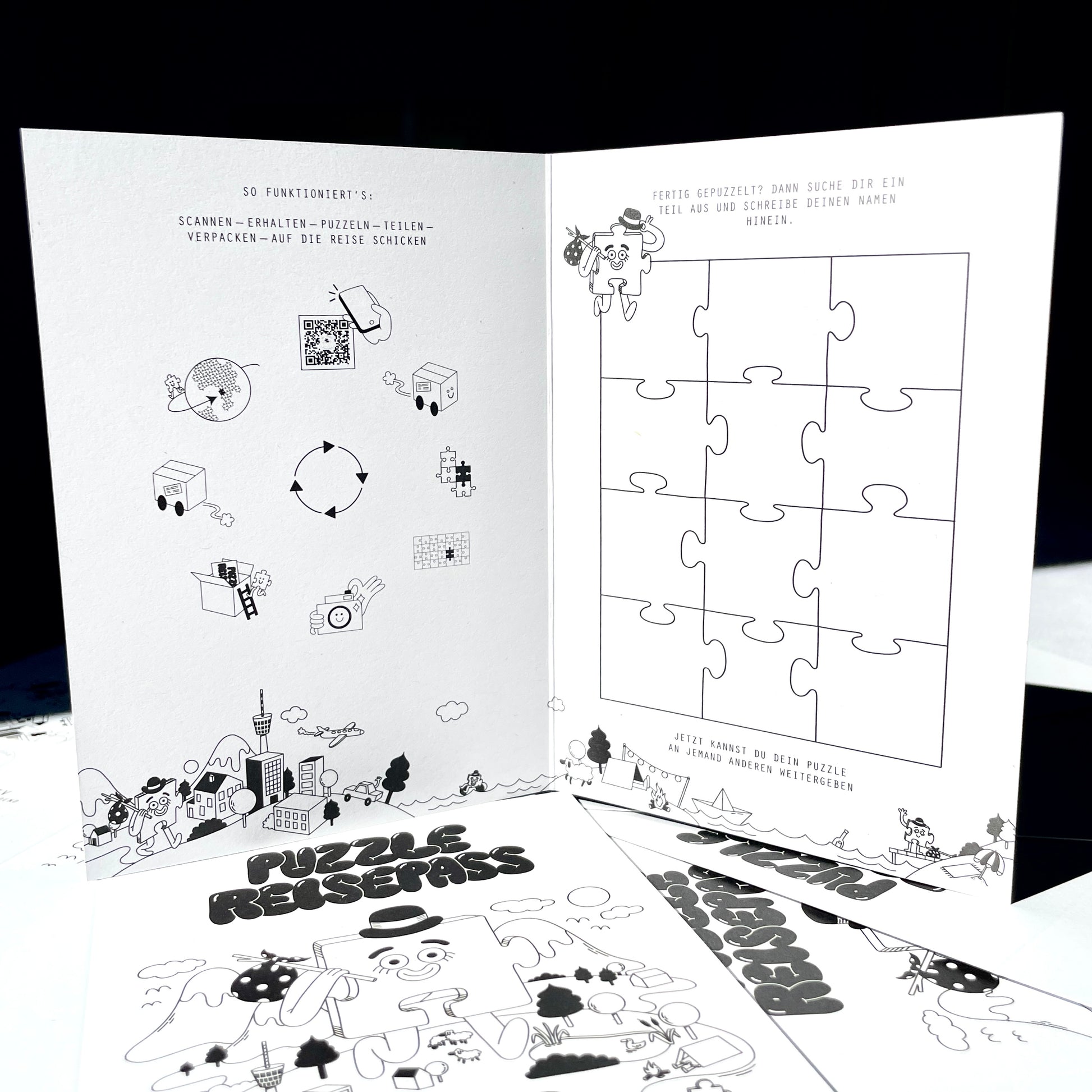 Mit dem Puzzle Reisepass könnt ihr eure fertig gelegten Puzzles an Freund*innen, Familie, Nachbar*innen, ... weitergeben. Schickt eure Puzzle auf Wanderschaft!
